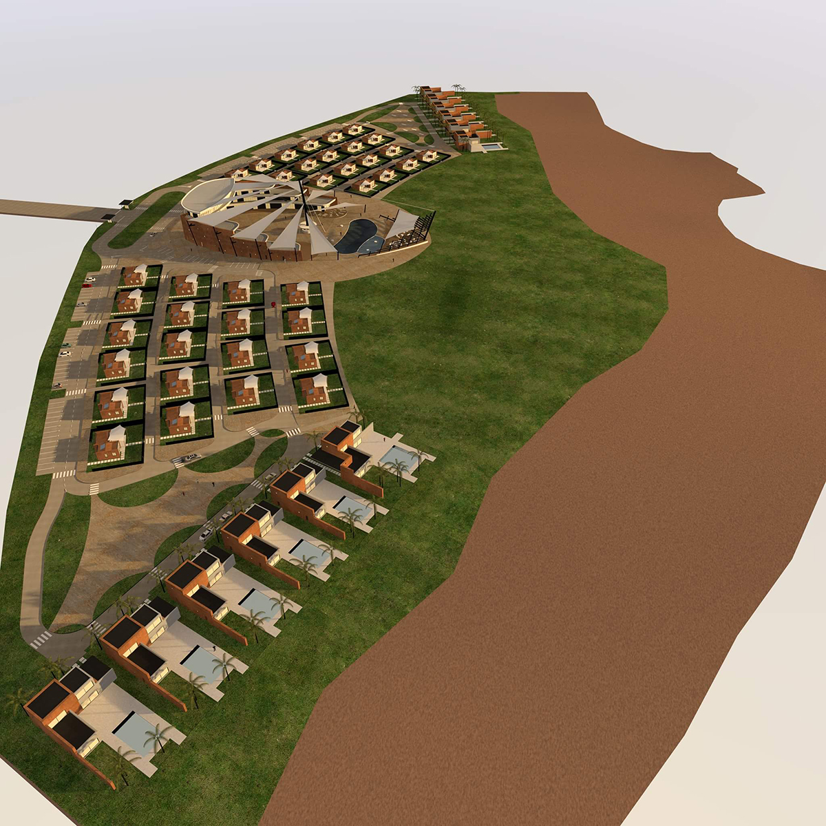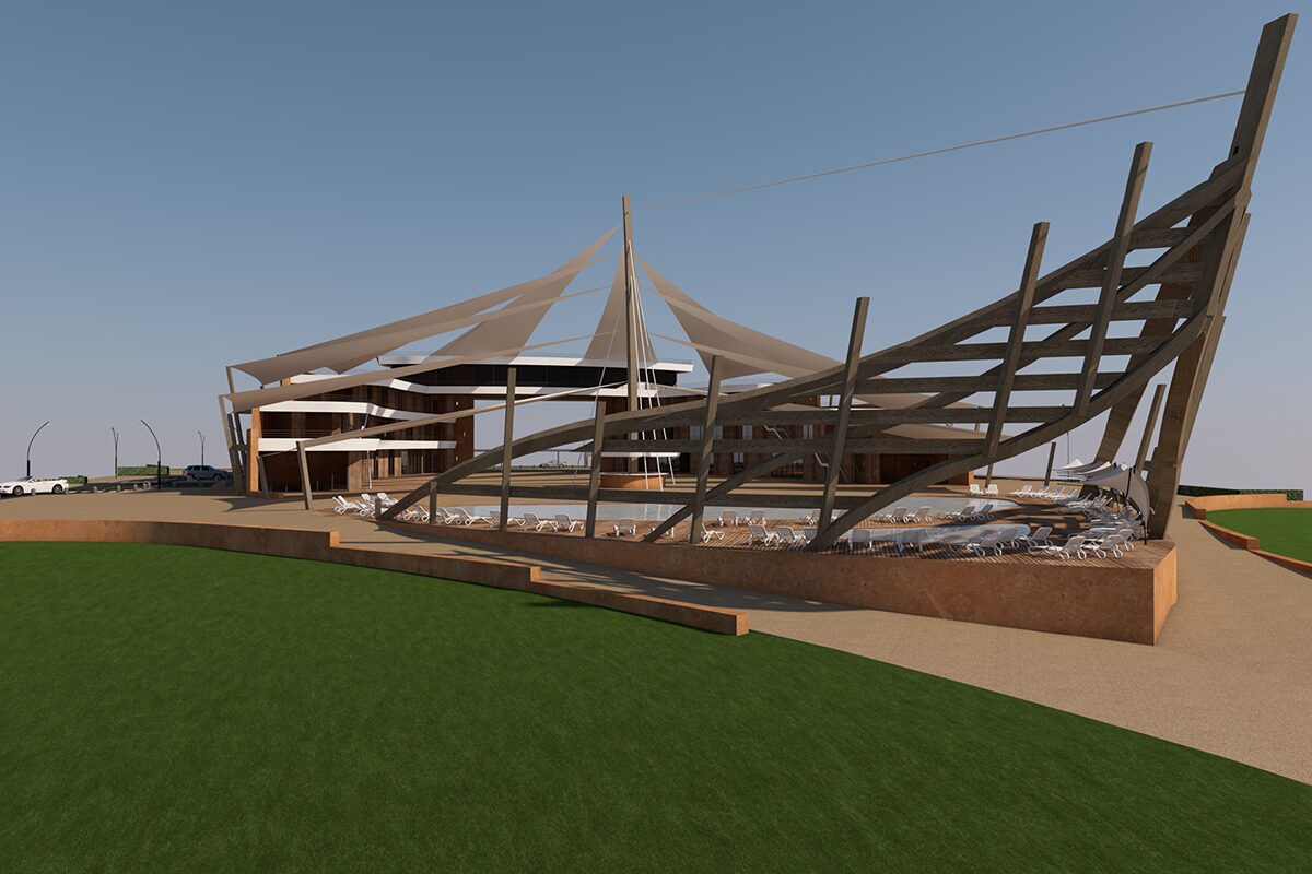Conception des plans et images 3D : élaboration des plans architecturaux (sentiers, aires de pique-nique, belvédères, sanitaires, parkings), modélisation 3D photoréaliste pour visualiser l’insertion du parc dans le paysage côtier, choix des matériaux écologiques et locaux.
